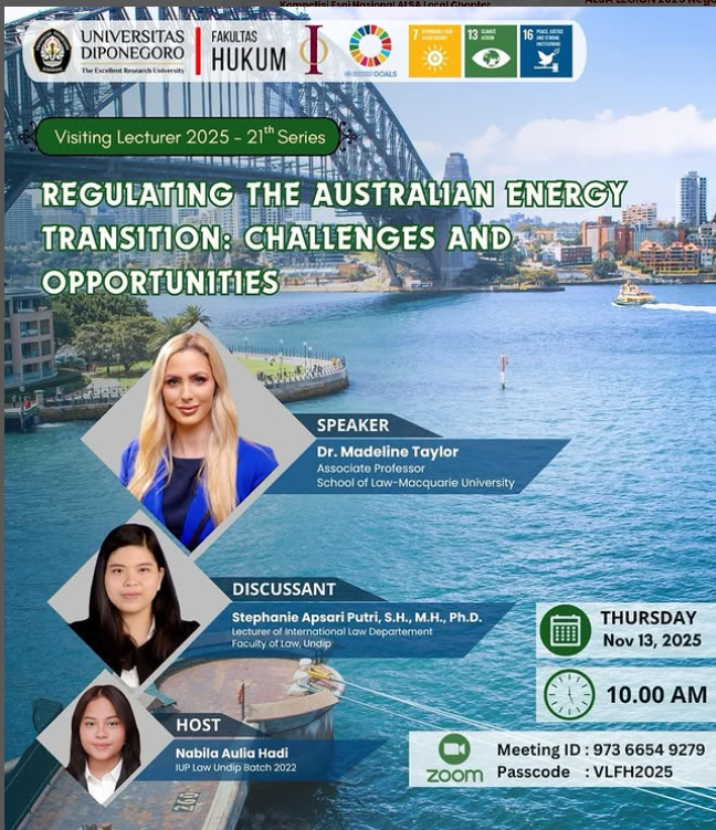 Faculty of Law under Coordination of International Office Law Undip proudly present 21th Serie Visiting Professor 2025.